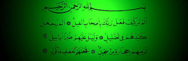 Elem tera keyfe fe'ale rabbüke biashâbilfîl. Elem yec'al keydehüm fî