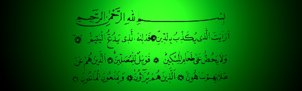 Gördün mü o, dîne (ceza gününe ve âhirete) inanmayani? Iste hak dîne ve ceza gününe inanmayan, o kimsedir ki: Öksüzü itip kakar, çâresizin ve yoksulun yiyecegine dair tesvikte bulunmaz; ne kendisi doyurur, ne de baskalarinin doyurmasi için kayirir. Vay o namaz kilanlarin haline ki, onlar namazlarini geregi gibi ciddî bir vazife olarak yapmazlar. Onlar ki gösteris için yaparlar ve yardimligi sakinirlar (kimseye bir damla sey vermek istemezler.)