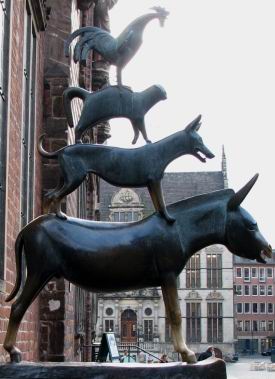 En altta esek, sonra köpek, onun üstünde kedi ve nihayet en tepede de horoz. Pencereye yaklasip çikarabilecekleri en yüksek sesle bagirmaya baslamislar.